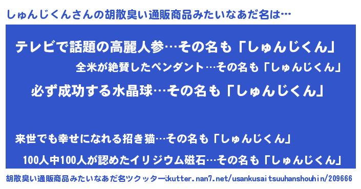 | 男性向けラノベタイトル風あだ名 | 『しゅんじくんの憂鬱』 |