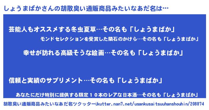 | 男性向けラノベタイトル風あだ名 | 『ショウマバカスレイヤー』 |