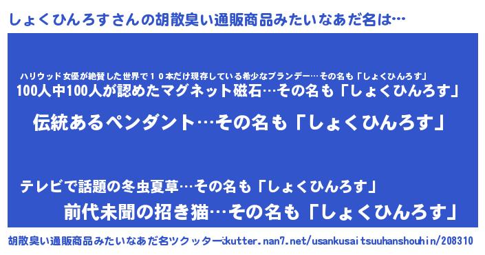 | 意味不明あだ名 | 『とにかく怪しいしょくひんろす』 |