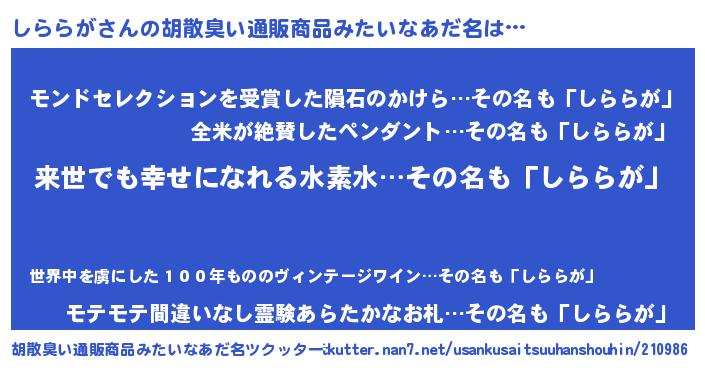 | ヘコむあだ名 | 『しららが(苦笑)』『しらっふぃ~』 |