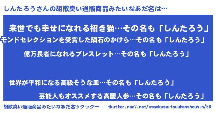 ヘコむあだ名 | 『しんにー』『しんたろう(笑)』 |