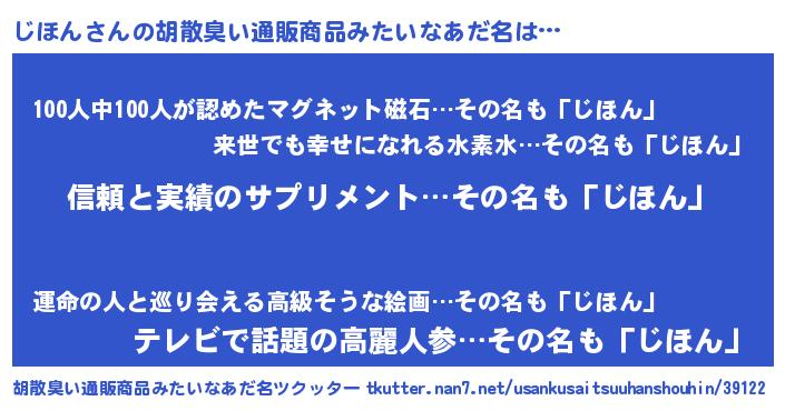 | 意味不明あだ名 | 『しいたけ科じほん属』『自称じほん』 |