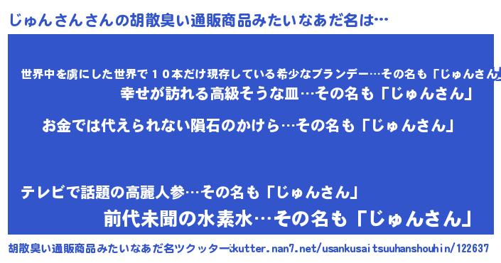 男性向けラノベタイトル風あだ名 | 『転生したらじゅんさんだった件』 |