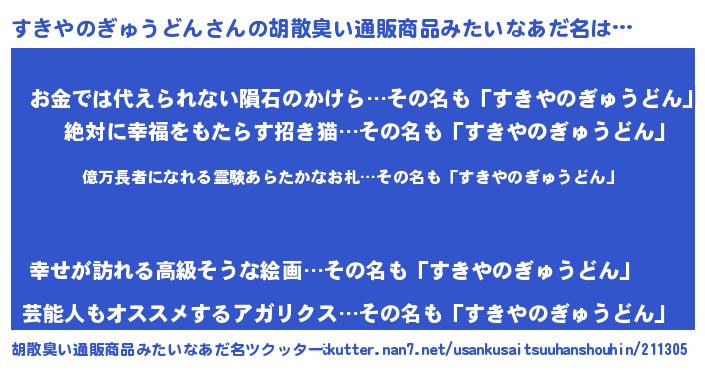 | 欧米人風あだ名 | 『マイケルすきやのぎゅうどん』 |