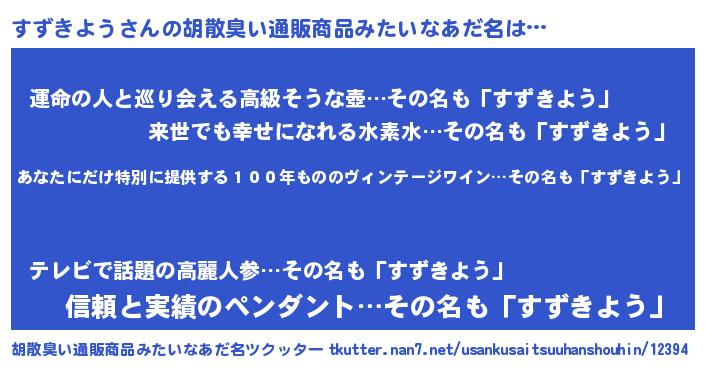| 意味不明あだ名 | 『住所不定無職すずきよう(6歳)』 |