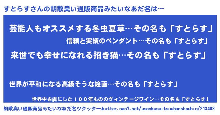 | 意味不明あだ名 | 『永久保存すとらす』『自称すとらす』 |