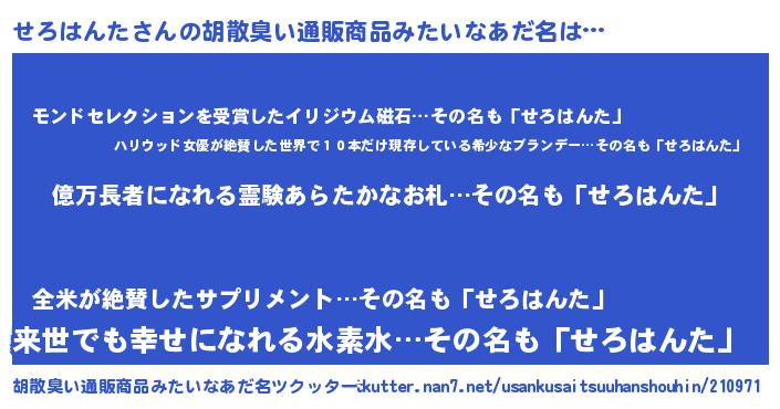 せろはんたさんの胡散臭い通販商品みたいなあだ名をツクッター!