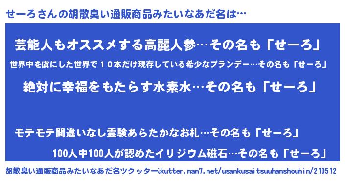 | 意味不明あだ名 | 『永久保存せーろ』『自称せーろ』 |