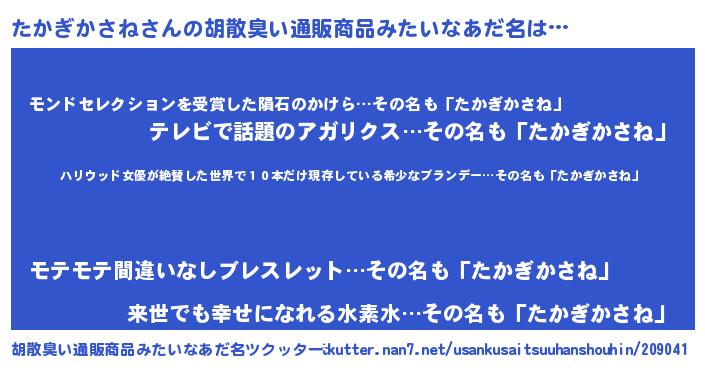 | ヘコむあだ名 | 『たかぎかさね(苦笑)』『たかっふぃ~』 |