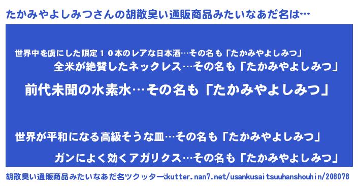 | ヘコむあだ名 | 『たかみやよしみつ(遠い目)』『たか太郎』 |