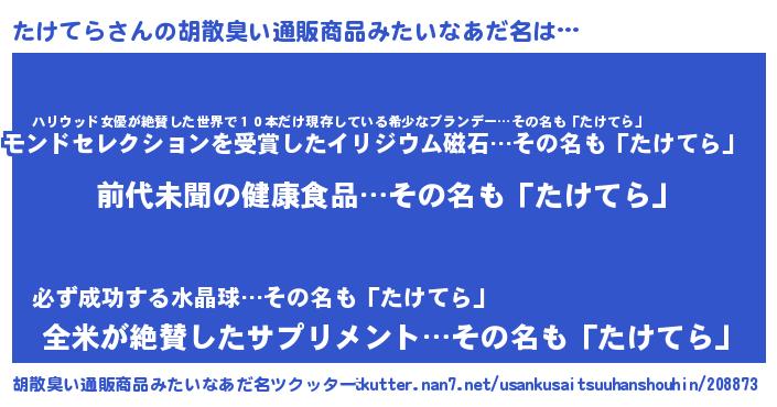| 意味不明あだ名 | 『永久保存たけてら』 |