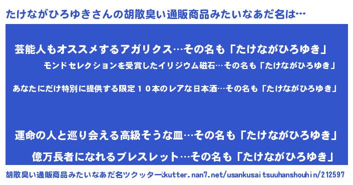| 意味不明あだ名 | 『住所不定無職たけながひろゆき(65歳)』 |