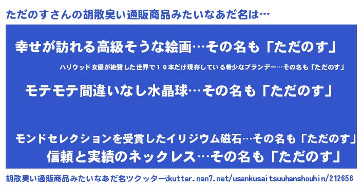 | 男性向けラノベタイトル風あだ名 | 『タダノスアートオンライン』 |