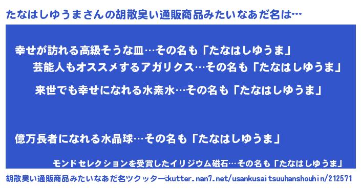 | 意味不明あだ名 | 『永久保存たなはしゆうま』 |