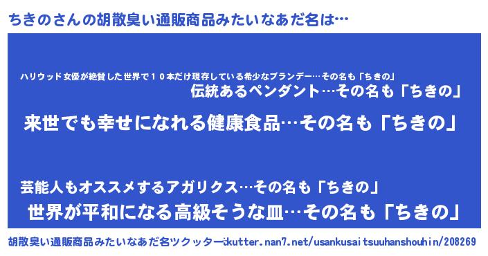 | 男性向けラノベタイトル風あだ名 | 『ちきのという概念が存在しない退屈な世界 』 |