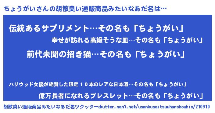 | 意味不明あだ名 | 『永久保存ちょうがい』 |