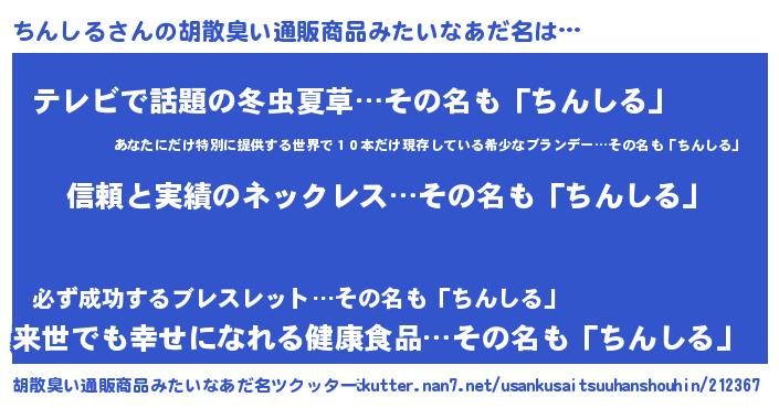 | 男性向けラノベタイトル風あだ名 | 『チンシルスレイヤー』 |