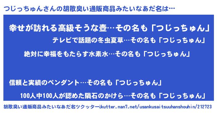 | 女子向けラノベタイトル風あだ名 | 『異世界で失敗しない100のつじっちゅん』 |