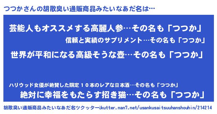 | ヒーロー風カッコイイあだ名 | 『ウルトラつつかマン』『ネオツツカ』 |
