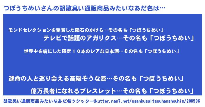 | 意味不明あだ名 | 『住所不定無職つぼうちめい(41歳)』 |