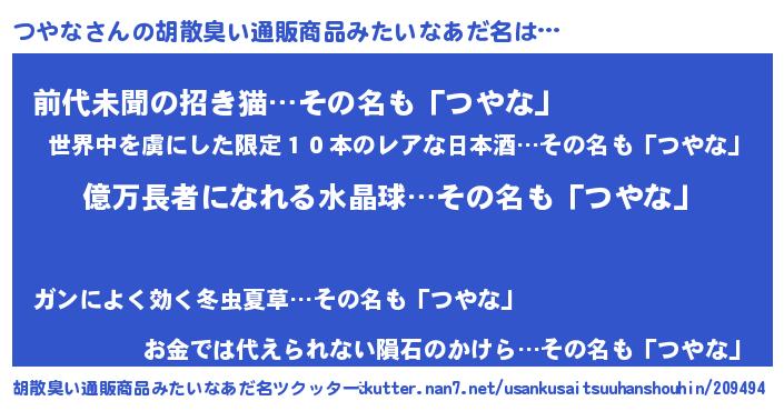 | 意味不明あだ名 | 『ペロリンつやな』『永久保存つやな』 |
