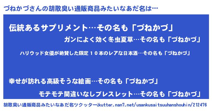 | 意味不明あだ名 | 『住所不定無職づねかづ(68歳)』 |