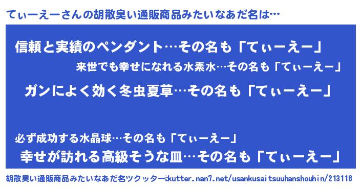 | ヘコむあだ名 | 『てぃっちょ』『つくし』『てぃもー』 |