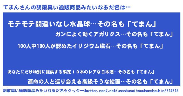 | 意味不明あだ名 | 『眠気覚ましガムてまん味』『自称てまん』 |