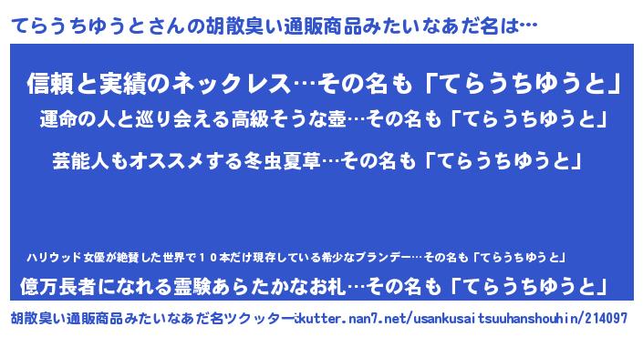| 意味不明あだ名 | 『自称てらうちゆうと』 |