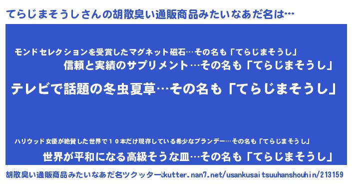 | 意味不明あだ名 | 『自称てらじまそうし』 |