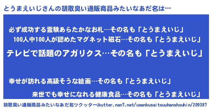 | ヘコむあだ名 | 『とうもー』『とうまえいじ(遠い目)』 |