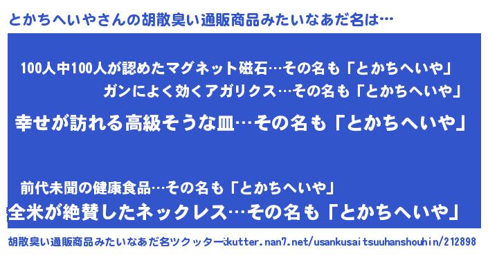 | 意味不明あだ名 | 『とかちへいやフォーエバー』 |