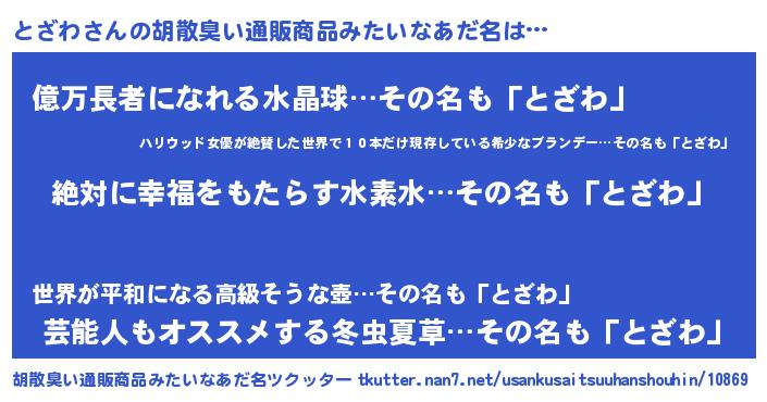 | ヘコむあだ名 | 『とざわ(苦笑)』『とざにゅー』 |
