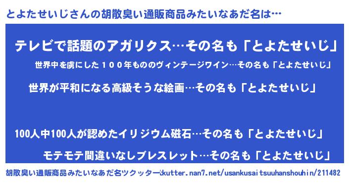 | 肩書あだ名 | 『とよたせいじ総理大臣』 |