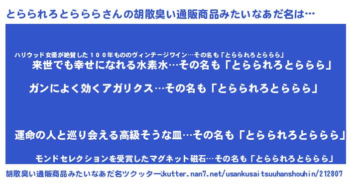 | 意味不明あだ名 | 『自称とらられろとららら』 |