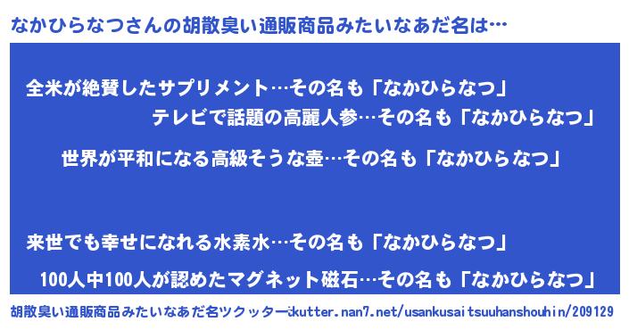 | 男性向けラノベタイトル風あだ名 | 『なかひらなつに滅ぼされるだけの簡単なお仕事です』 |