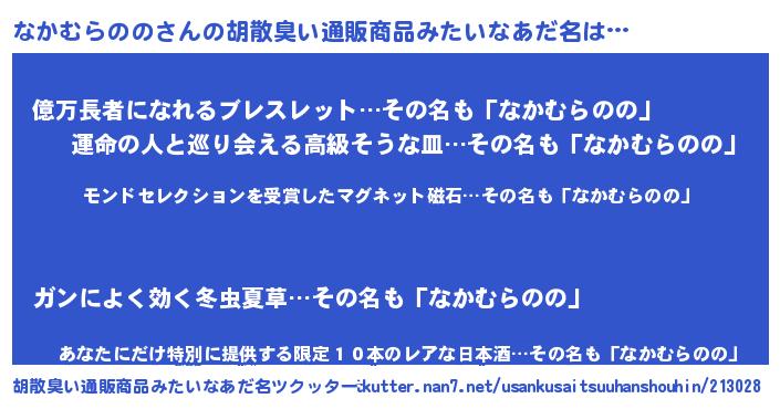 | 肩書あだ名 | 『なかむらのの助教授』『なかむらののCEO』 |