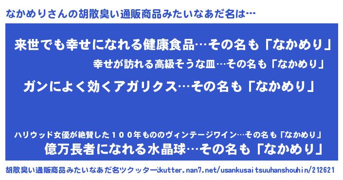 | 意味不明あだ名 | 『自称なかめり』『永久保存なかめり』 |