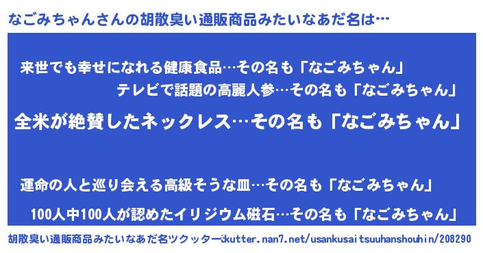| ヘコむあだ名 | 『なごっ子』『なごみちゃん(笑)』 |