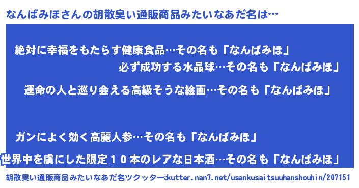 女子向けラノベタイトル風あだ名 | 『なんばみほの玉の輿計画!』 |