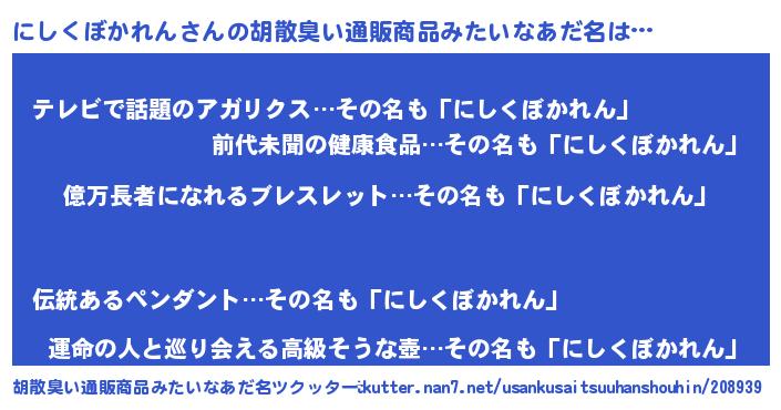 | 恥ずかしいあだ名 | 『プリティーにしくぼかれん』『にしちん』 |
