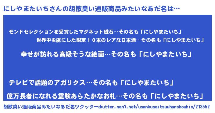 | 意味不明あだ名 | 『にしやまたいちフォーエバー』 |