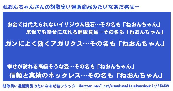 | 意味不明あだ名 | 『自称ねおんちゃん』 |