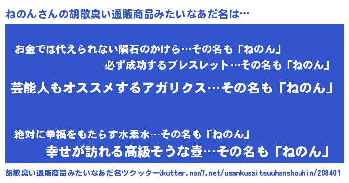 | ヒーロー風カッコイイあだ名 | 『最強戦士ネノン』『愛の使者ねのん』 |