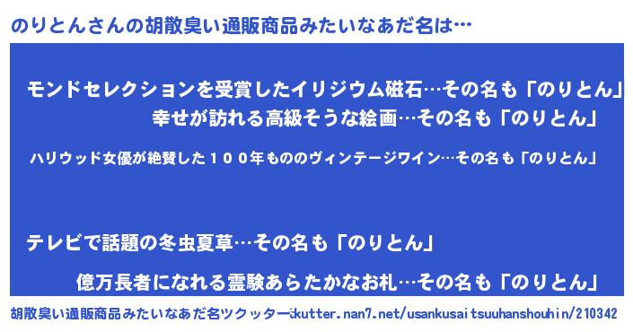 | 意味不明あだ名 | 『住所不定無職のりとん(6歳)』 |