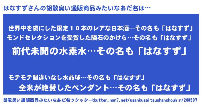 | ヘコむあだ名 | 『はなすず(震え声)』『はな太郎』 |
