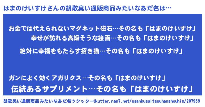 | 意味不明あだ名 | 『永久保存はまのけいすけ』 |