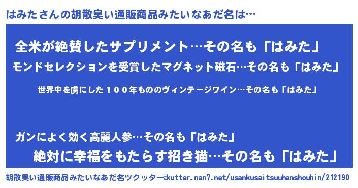 | 意味不明あだ名 | 『住所不定無職はみた(1歳)』 |