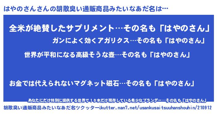 | 意味不明あだ名 | 『はやのさんフォーエバー』 |