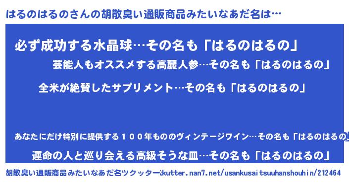 | 意味不明あだ名 | 『とにかく怪しいはるのはるの』 |